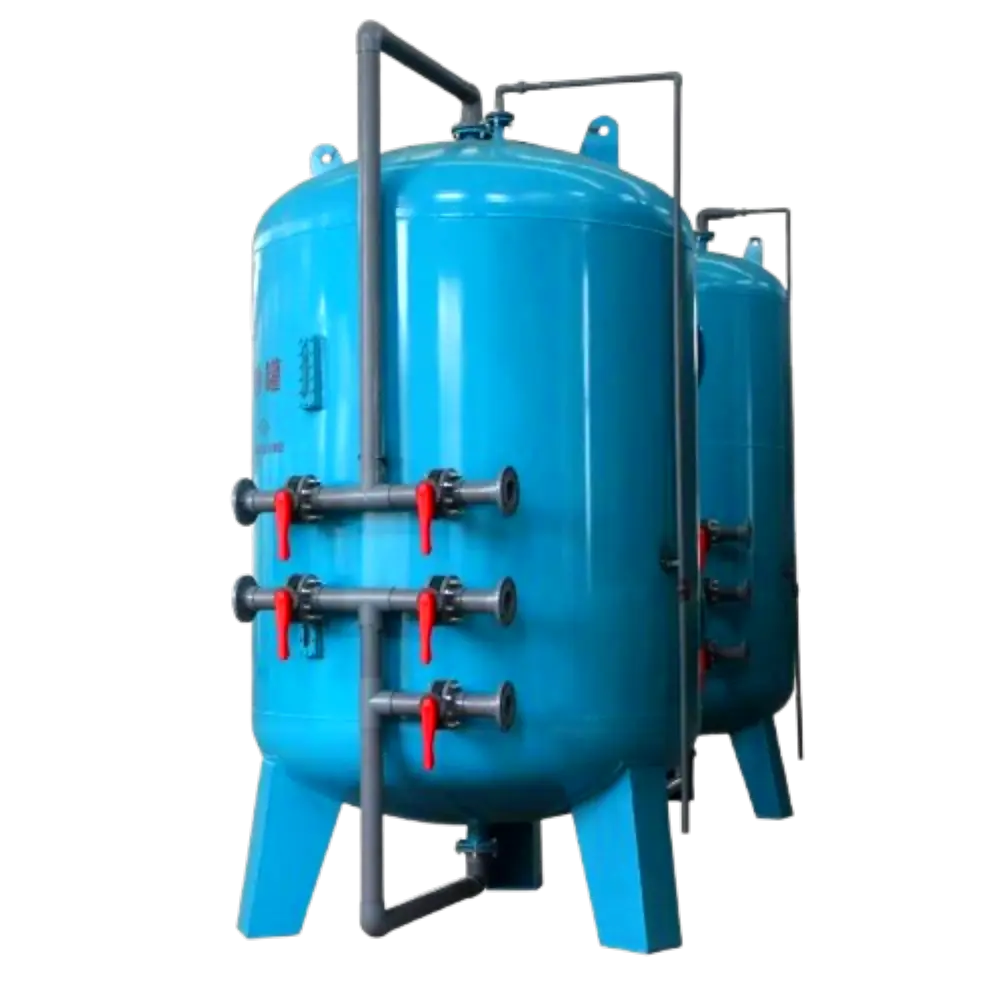 - Basınçlı Filtre Tankı: Epoksi kaplı karbon çelik veya 150 psi FRP, 10 bar dizayna göre seçilir.